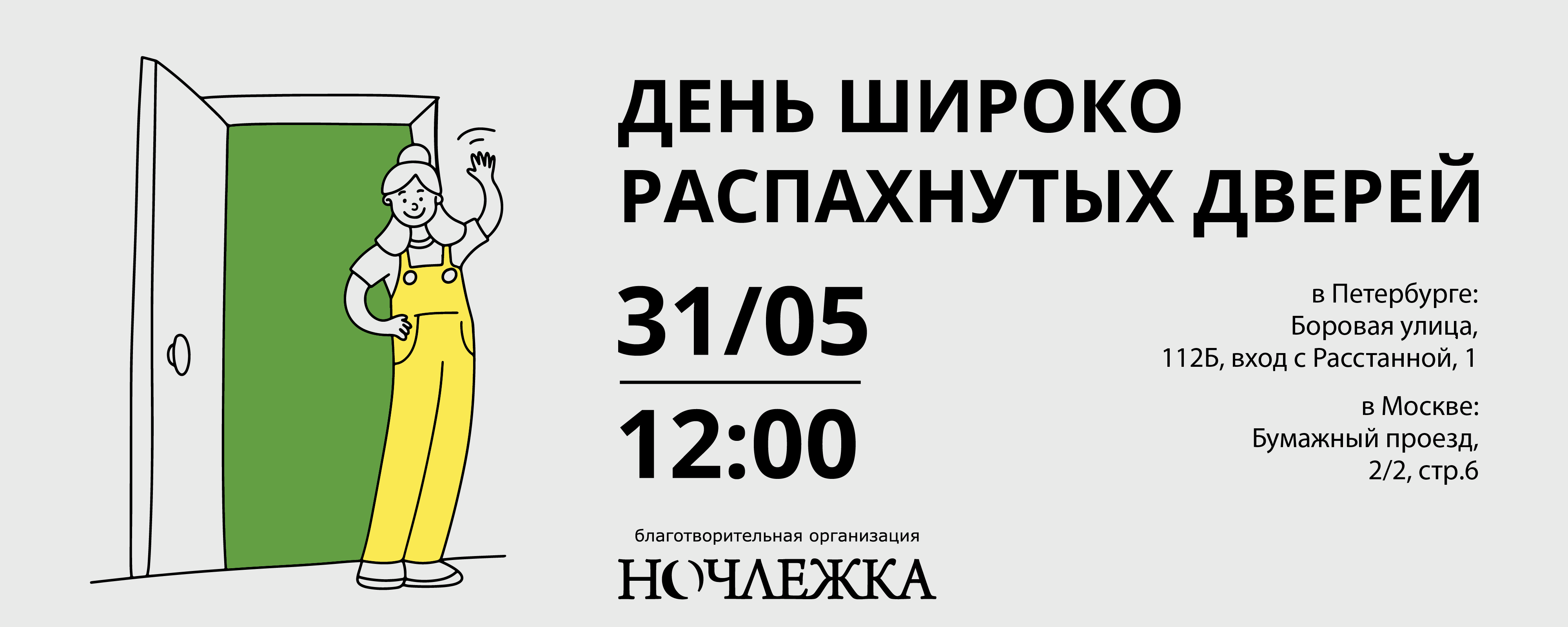Благотворительная организация Ночлежка приглашает всех в гости в Петербурге. Традиционно мы широко распахиваем двери для всех желающих!